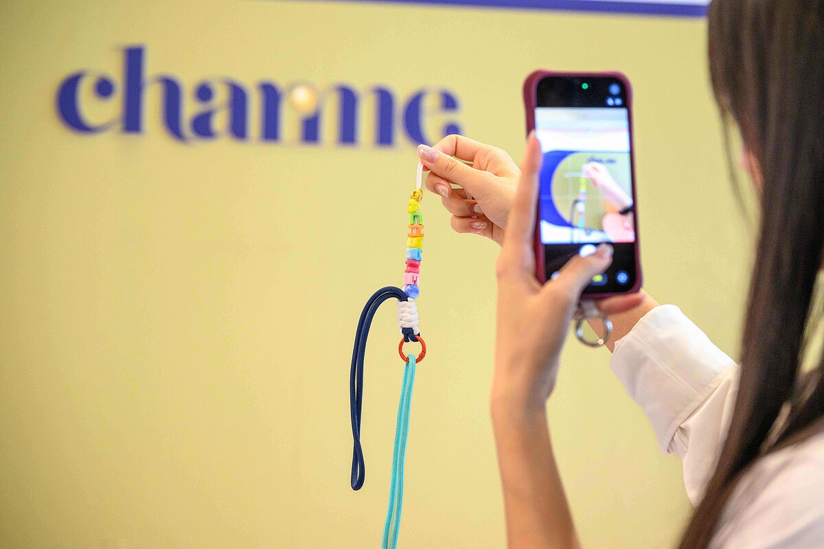 踏入展區,首先是充滿驚喜的「互動增運站」,這不僅是一個有趣的互動裝置,更邀請消費者親手轉出專屬的寓意組合,解鎖不同的祝福與象徵意義,讓 Charme 瞬間成為承載好運的時尚配件。同時,現場還貼心配合產品小卡,實現輕鬆自在的自助式購物體驗。接著漫步至「Charme 里程碑牆」,這裡不僅呈現了年度人氣熱銷串珠,更帶你一探品牌引以為傲的四大工藝亮點。首先,點睛品採用卓越的硬金電鑄工藝,不僅使串珠外形細節極具立體感,製作過程更兼顧了環保。第二,最讓佩戴者感到貼心的是其獨家的內壁矽膠設計,這項巧思令串珠不易滑動,完全不需要額外的配件,就能隨意調節串珠之間的距離。第三,品牌大膽突破傳統金色的限制,玩出色彩新可能,運用酷黑工藝、數碼彩繪技術,甚至配合溫潤的貝母或高雅的陶瓷材質,大幅提升了珠寶的層次與質感。最後,為了滿足各種穿搭需求,現場展示了多達 33 款不同顏色與材質(如質感的真皮、率性的不鏽鋼)的配繩,讓你能自由發揮百搭的 Mix & Match 風格。