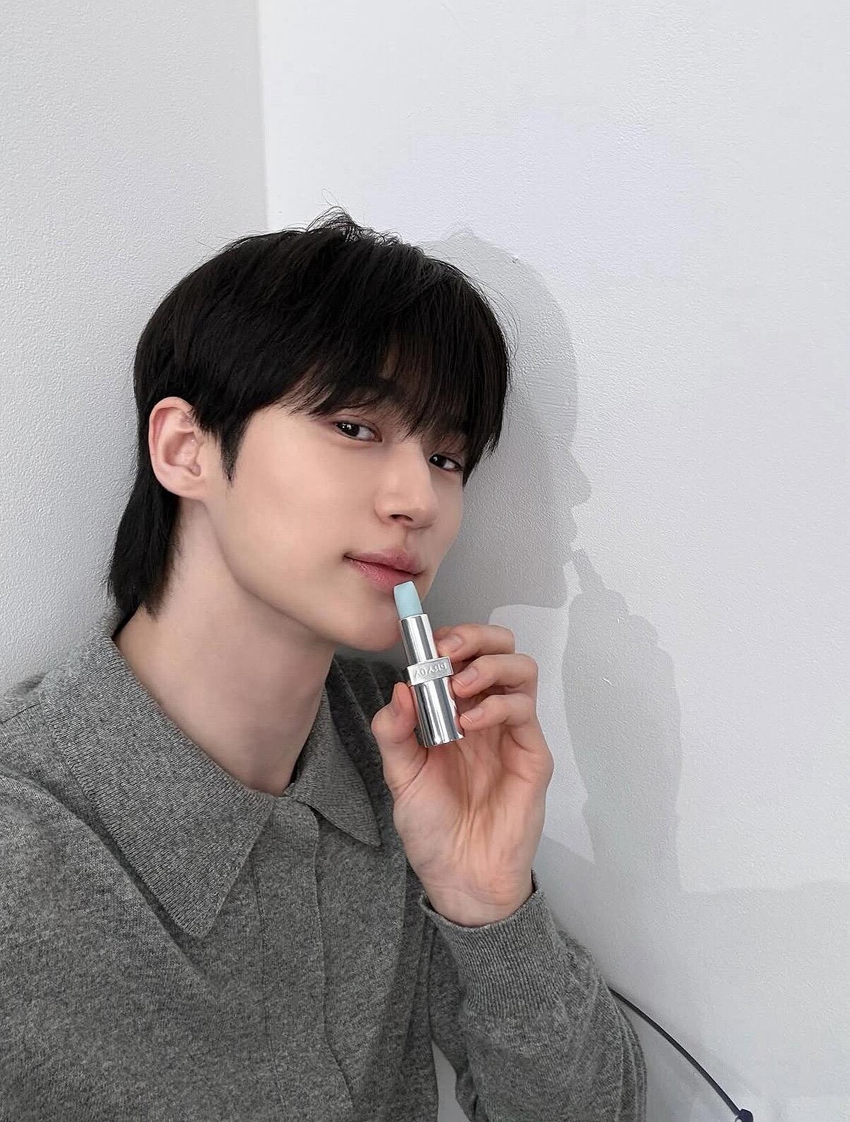 除了Prada的服裝、配件之外,Prada的美妝同樣也有邊佑錫加持,那支火紅半邊天的護唇膏,粉絲必須跟上!