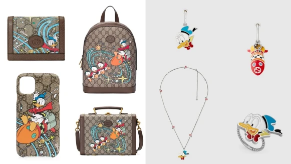 Gucci找上迪士尼經典角色「唐老鴨」,打造全新手機袋、後背包、皮夾、項鍊、手環、戒指…等Epilogue唐老鴨聯名系列。