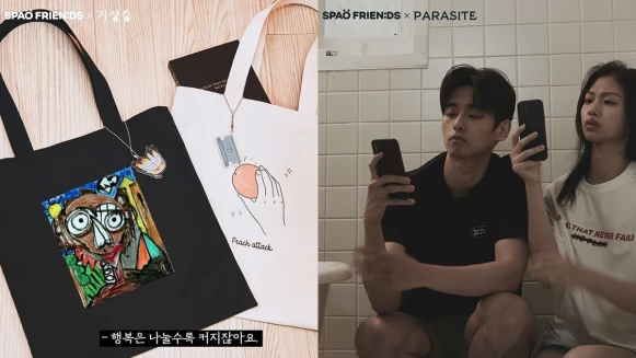 SPAO實在太狂!最新聯名電影《寄生上流》把電影中弟弟自畫像、水蜜桃、磐石元素變成服裝、托特袋、配件