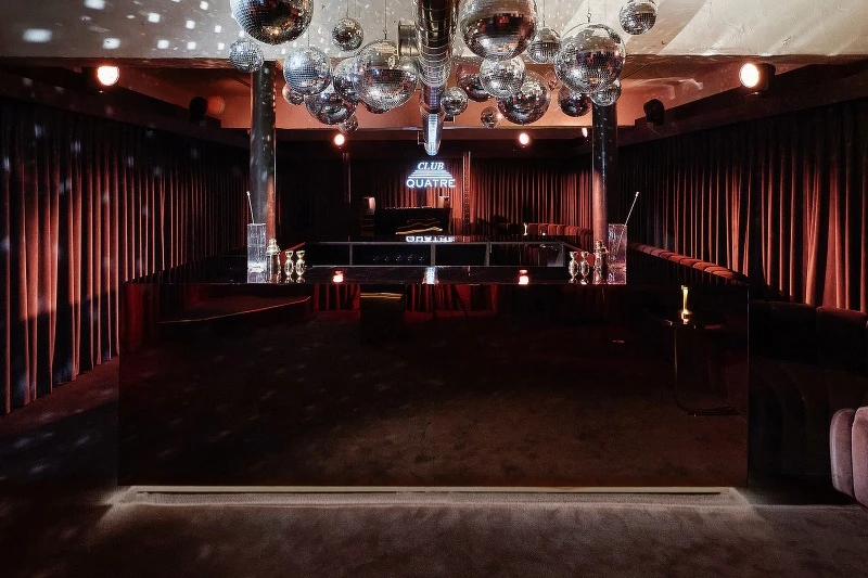 最後一個小彩蛋則是藏身在快閃店內地下室的「Club Quatre」,以奢華的酒紅色布幔搭配閃亮Disco燈球的酒吧,提供快閃店內專屬的特調飲品,為這趟Quatre快閃店之旅畫下精彩句點。