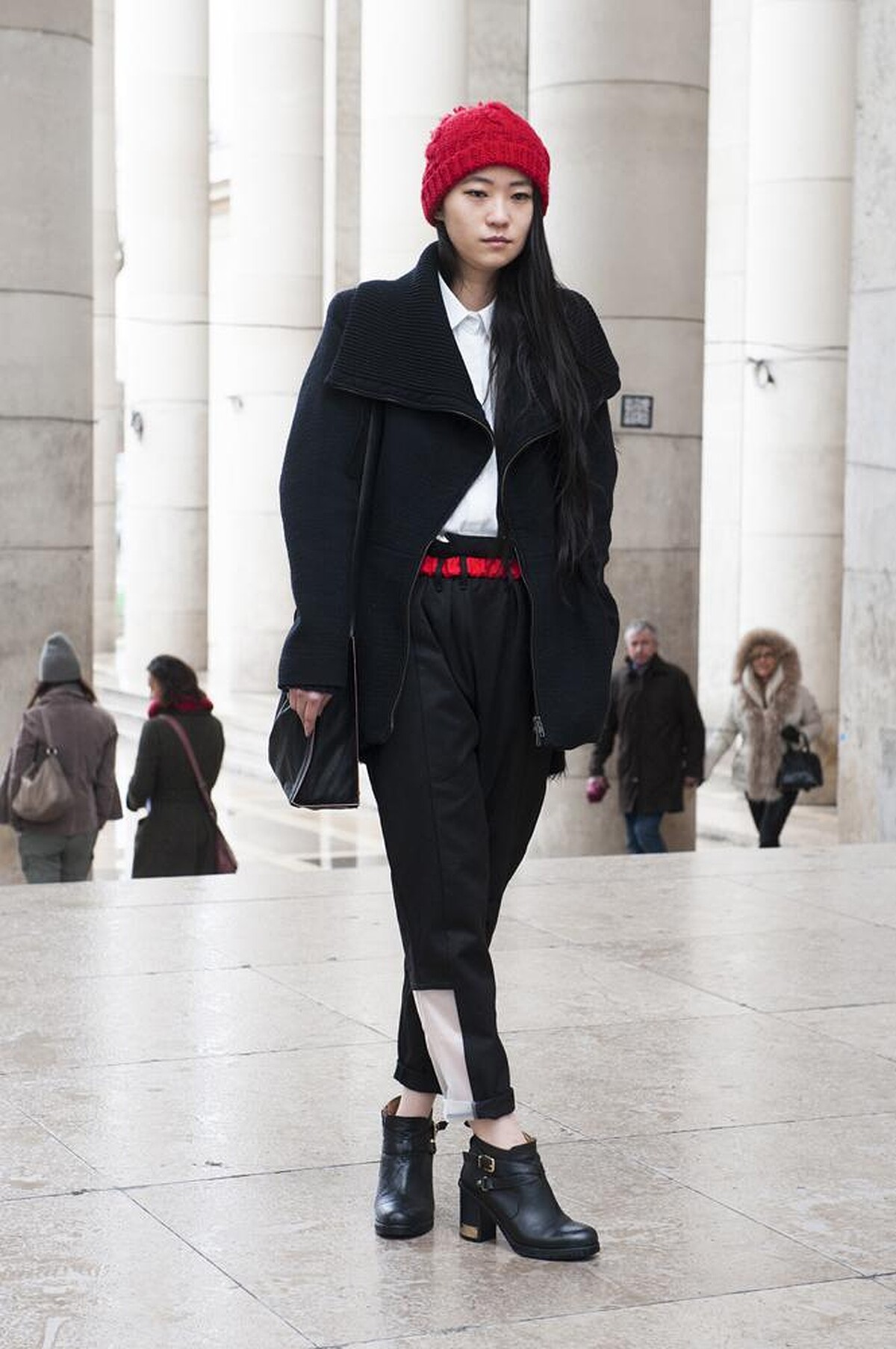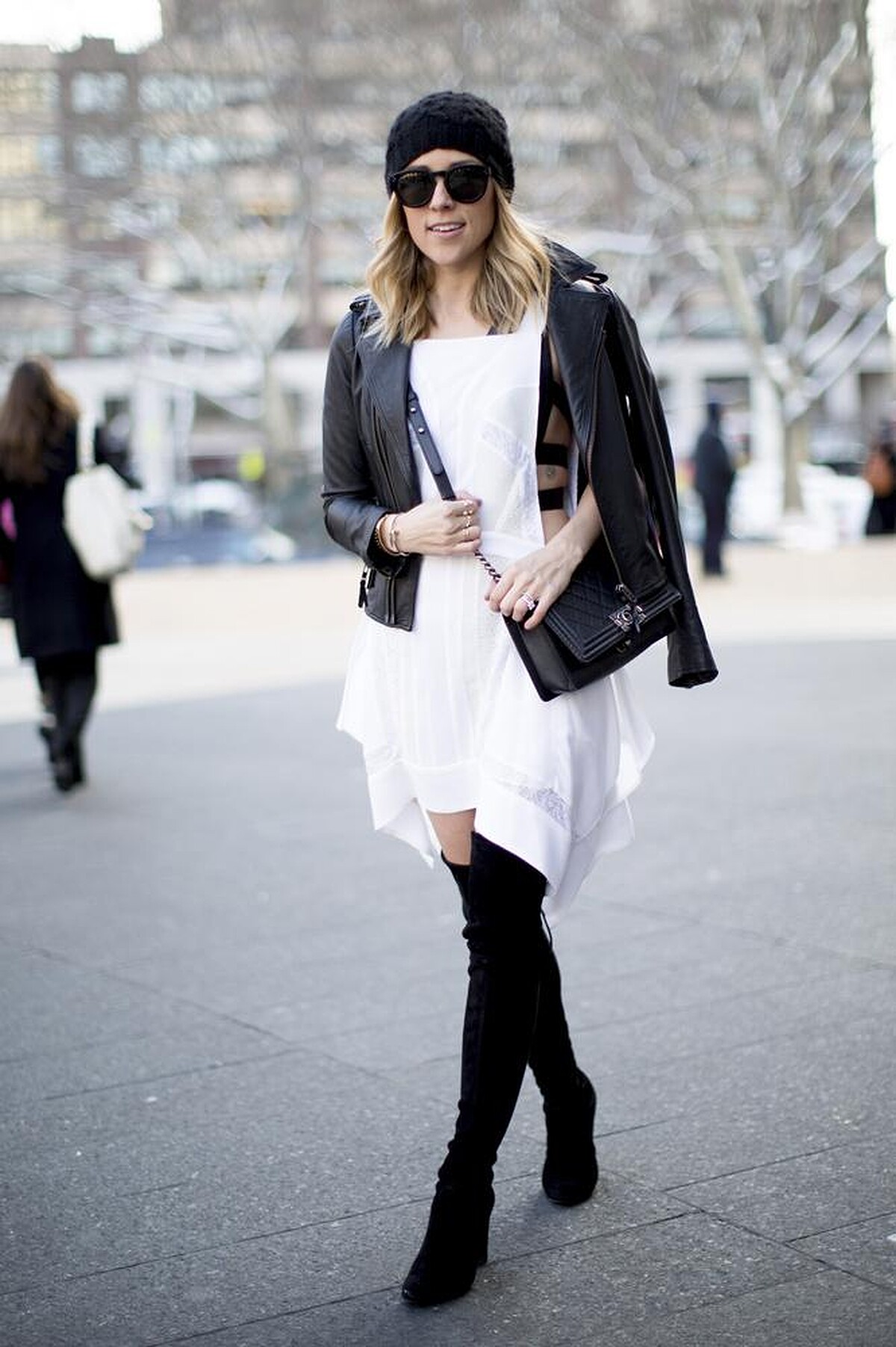 宇宙級部落客 Chiara Ferragni 是許多潮流女孩的穿搭指標。這回她以黑白色系的服裝,打造出帶有運動感的休閒輪廓 (Sporty Chic)。這時搭配上一頂簡單的毛帽單品,不僅能平衡整體比例,更具有畫龍點睛的效果,展現隨性不羈的時髦感。