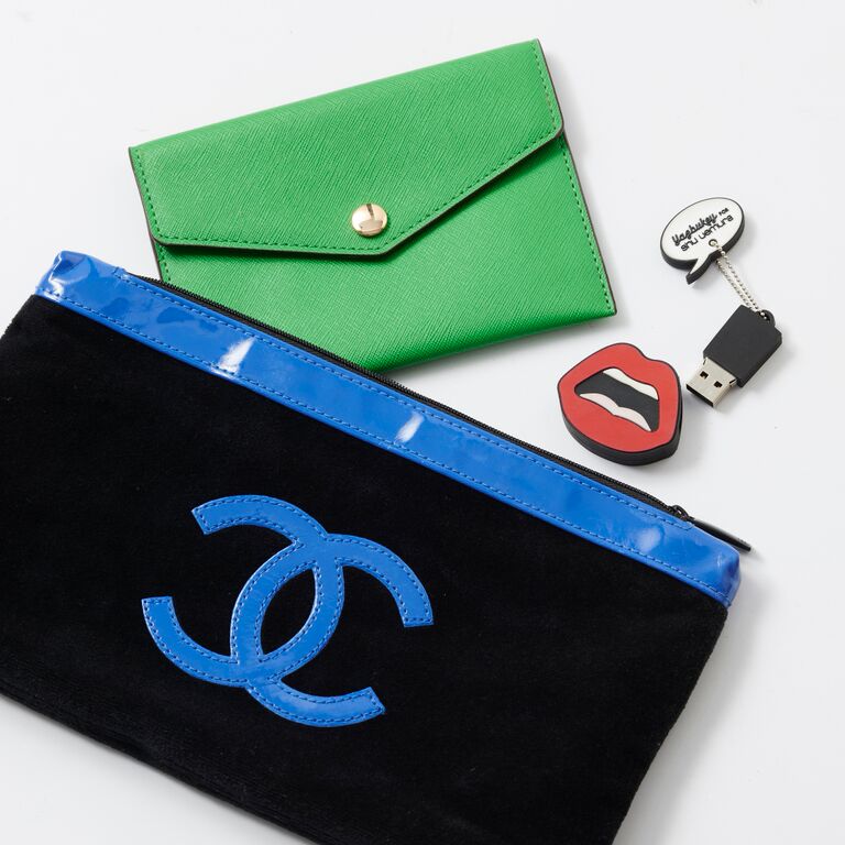 Chanel的萬用包拿來裝一些化妝品之外的小物,像是隨身碟、文具、飾品和眼罩等等,不喜歡在包裡大海撈針的感覺所以喜歡把它們都裝成一袋,要找就很方便。