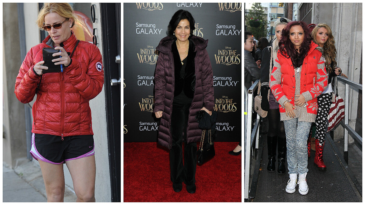 (右)羽絨背穿搭要格外小心,英國實境秀參賽者 Jade Thirlwall 已經穿了一件厚重的長版毛衣,嫌自己不夠腫,外面還要套上螢光橘羽絨背心,看她摸著肚子若有所思的樣子,不知是不是吃壞肚子了。
