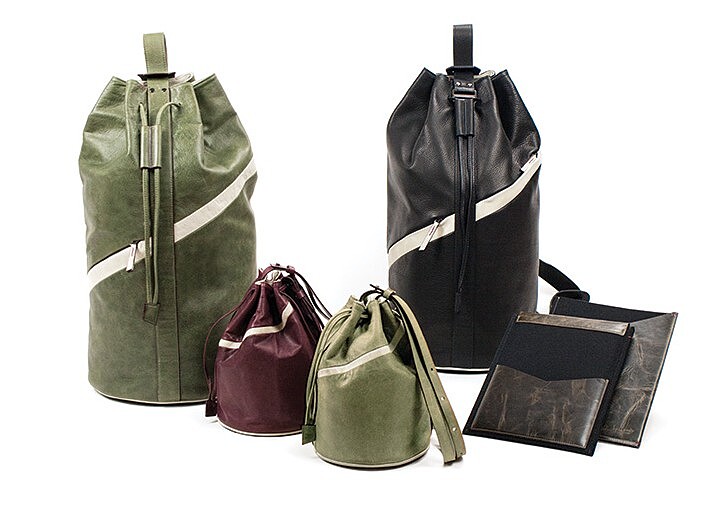 以洗鍊小牛皮製作而成的大容量束口背袋,無論是運動休閒或週末出遊都適用,設計靈感來自設計師Lan Peng弟弟彭于晏的需求,大容量可放置籃球、球鞋於包包中,連始源也愛不釋手,同系列的小容量款則比較適合女性或嬌小纖瘦身形,方便隨時拿取物品的人性化貼心設計大受好評。