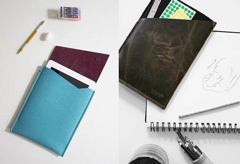 顏色亮麗的羊毛呢搭配仿舊皮革,內裡襯上柔軟的酒紅色麂皮,是一款多功能平板的電腦保護套,Jun則是Deok加上了磁鐵開闔袋口設計的雙胞胎,隨著使用時間的變化,皮革色澤會越發擁有獨特的歷史痕跡,充滿了匠心獨具的絕佳品味。