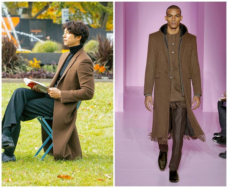 再來,你會發現,我們的Mr.孔在戲中最愛的搭配是大衣加素色高領毛衣,這樣搭配便是大寫的文藝氣質浪漫,時髦帥氣會從你的幹細胞散發出來。