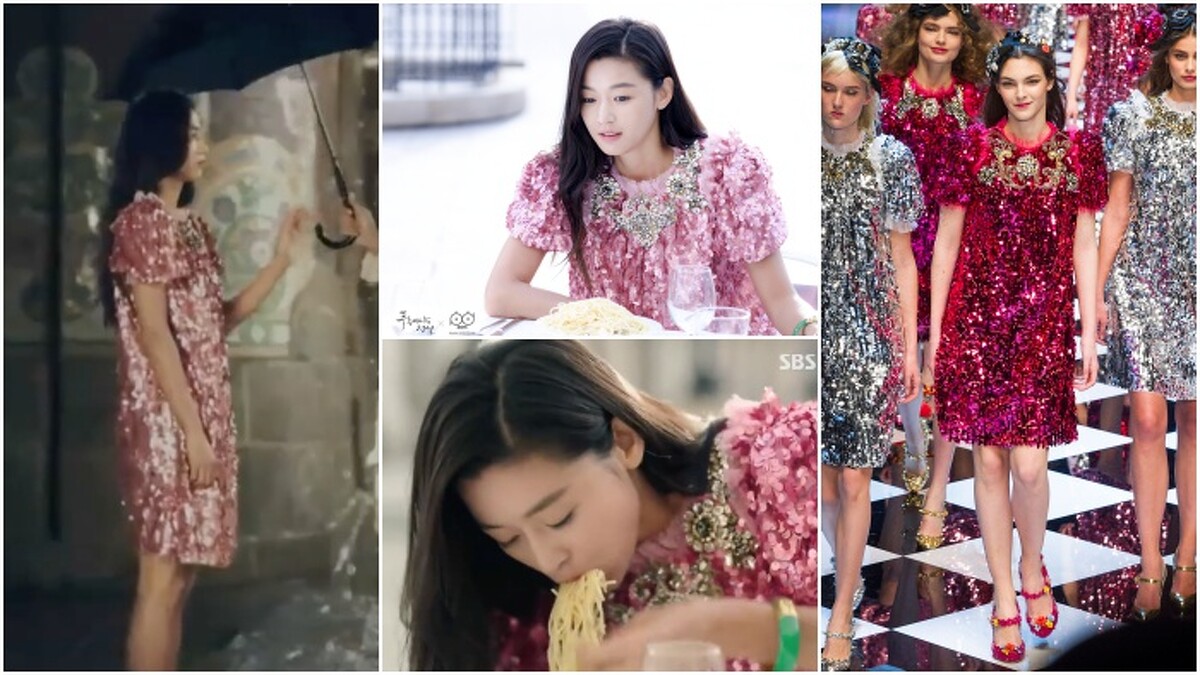 許俊宰為了沈清手上價值不菲的手環,百般討好她時,買給她的第一件禮物,就是Dolce&Gabbana的粉色亮片洋裝!