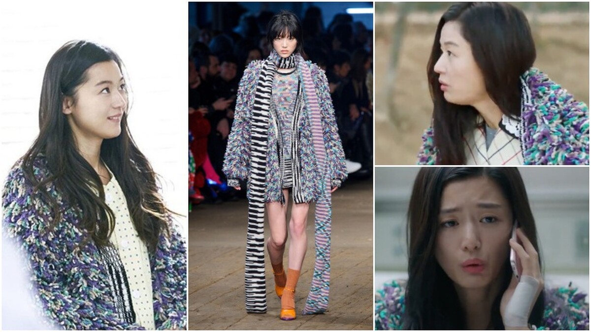 為了和俊宰見面的沈清,不小心被俊宰弟弟開車撞到!在醫院住院時,沈清穿著MISSONI的針織外套,即使氣色不佳,全智賢仍然穿出氣勢!