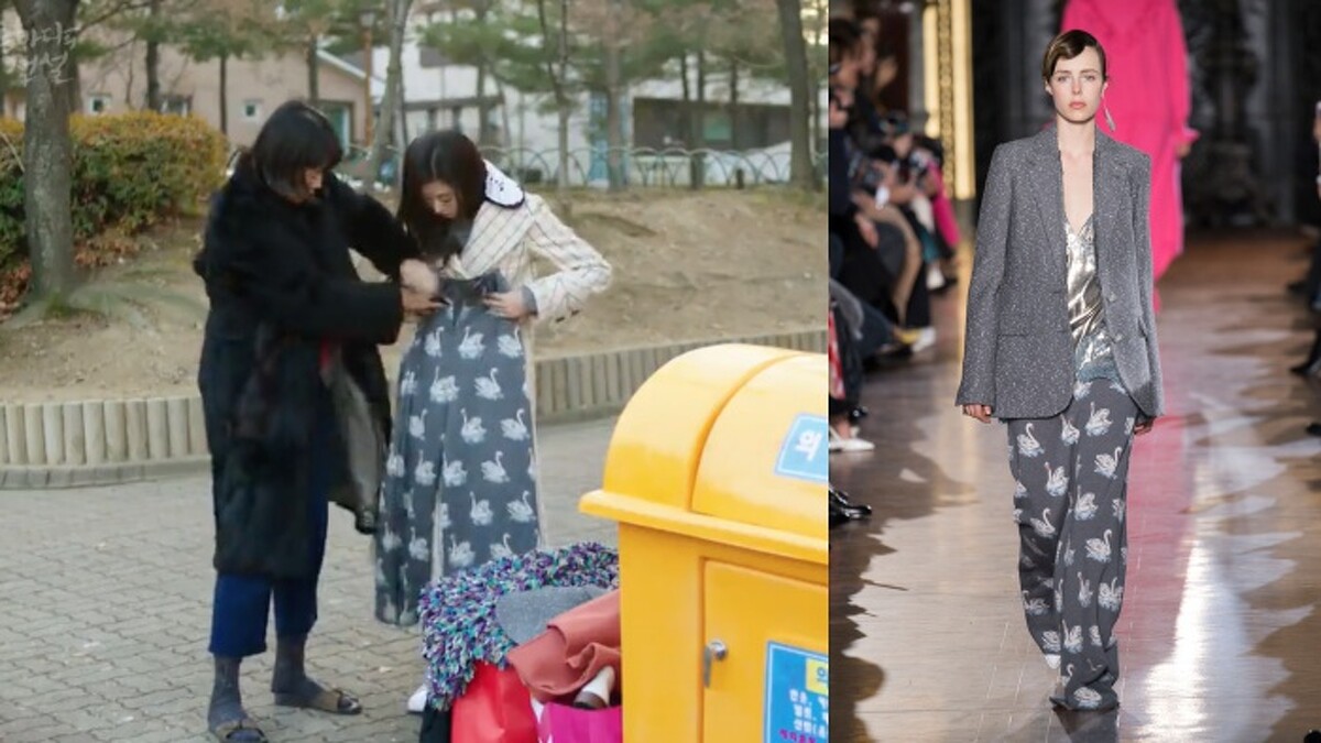 在都是有錢人的江南區,兩人一起在舊衣回收桶挖寶物,這件氣場十足的大衣,就是法國品牌LANVIN。