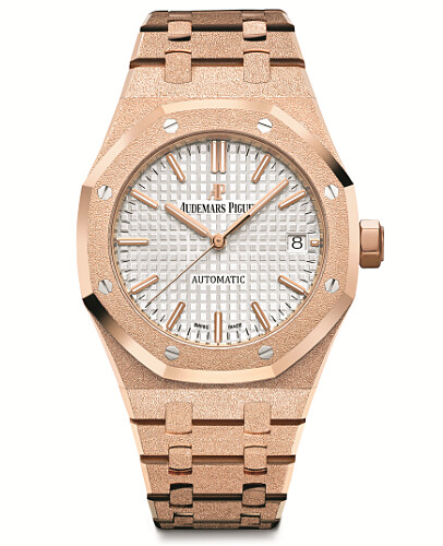 推出已然邁入第40個年頭,不只有由一代鐘錶大師 Gerald Genta 執設計筆的盛名,八角形的錶殼、刻意顯示於外的錶圈螺絲、錶盤的方格紋路裝飾等特質,從1970年代以來都是AP錶廠美學觀點的見證,今年推出的女裝腕錶系列選擇相當完整,最大的特色在運用於錶鍊上的霜金工藝—利用鑽石尖錘敲擊黃金,在表面上形成細微凹痕,透過光線折射出如鑽石粉塵的特殊光輝。