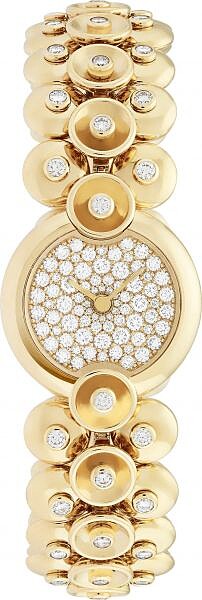 腕錶的鍊帶造型取材自1939年推出的 Paillette(法文的亮片)珠寶造型,以K金打造、一片片中央鑲嵌鑽石的圓形飾片組成,三行高低凹凸交錯層次排列,就像是精緻的珠串亮片般迷人炫目。