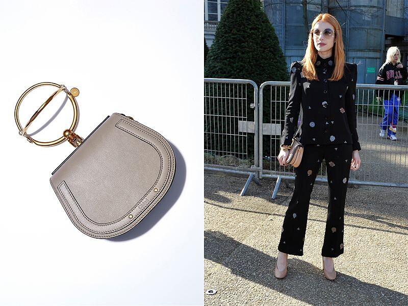 演員 Emma Roberts 參加了 Clare Waight Keller 為 Chloé 設計的最後一個服裝系列大秀,一身率性褲裝展現個性女孩的氣質,選搭的包款,則是近來很夯的 Nile Bag。搶眼的金屬環狀提把,正是這一季選擇包款的重要關鍵之一!