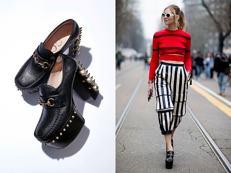 Gucci 近來在配件上的精采表現,絕對是有目共睹的,除了連續打造出好幾款話題包,由經典 Loafer 改造的拖鞋款式,也橫掃時裝週,成了潮人必備的話題鞋款。在全新一季,設計師融合了典雅與龐克裝飾元素,把品牌經典樂福鞋帶出全新風貌。當紅知名部落客 Chiara Ferragni 也在米蘭時裝週上穿搭亮相,帥氣踩街。