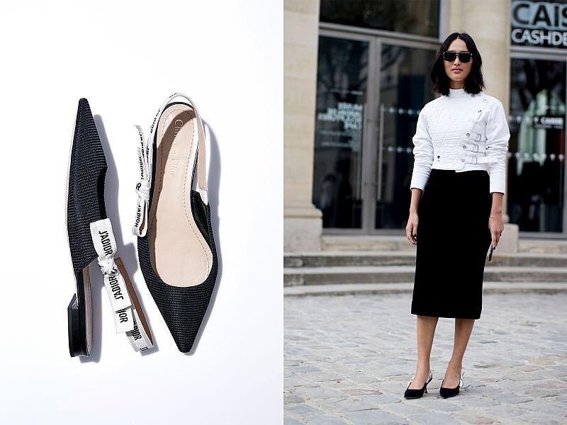 以各式 Logo 與標語炒起全新話題的 Dior,在新任設計師 Maria Grazia Chiuri 的手中,展現出摩登時髦又具有脫俗氣息的新風貌。擁有人氣部落格 Gary Pepper 的國際知名部落客 Nicole Warne,便在 Dior 秋冬女裝系列發表會上,以一身俐落的氣質裝扮,展現對品牌的支持。在黑白為基底的造型之下,搭配上 J’adior 緞帶尖頭鞋款,展現出摩登又優雅的時髦樣貌。
