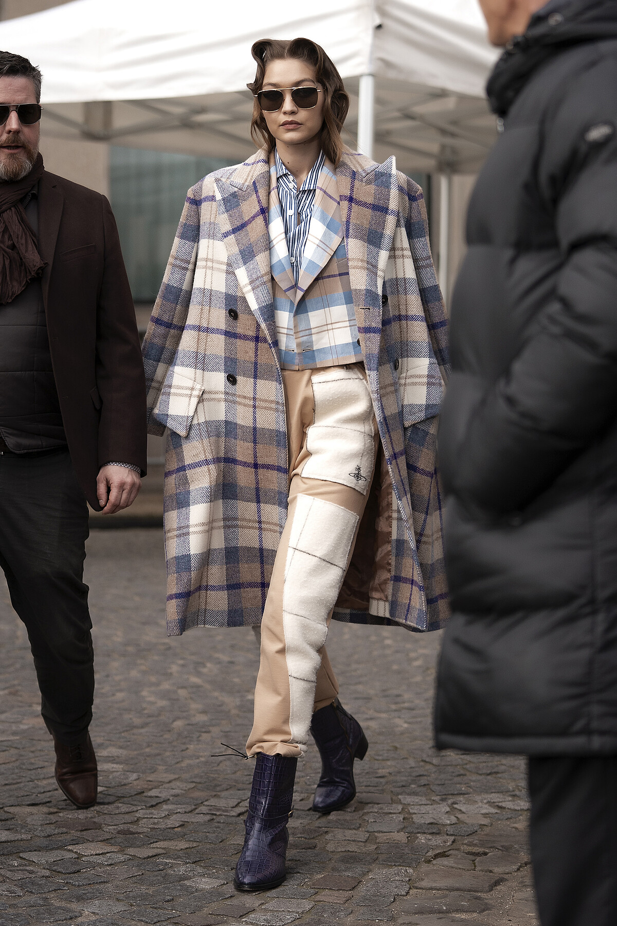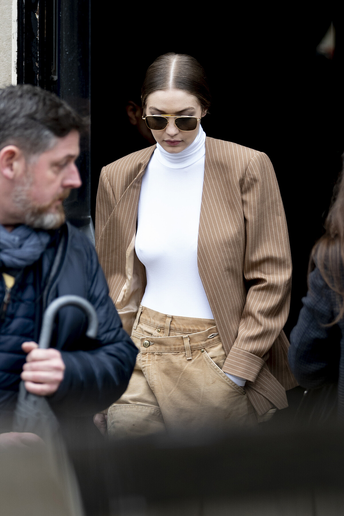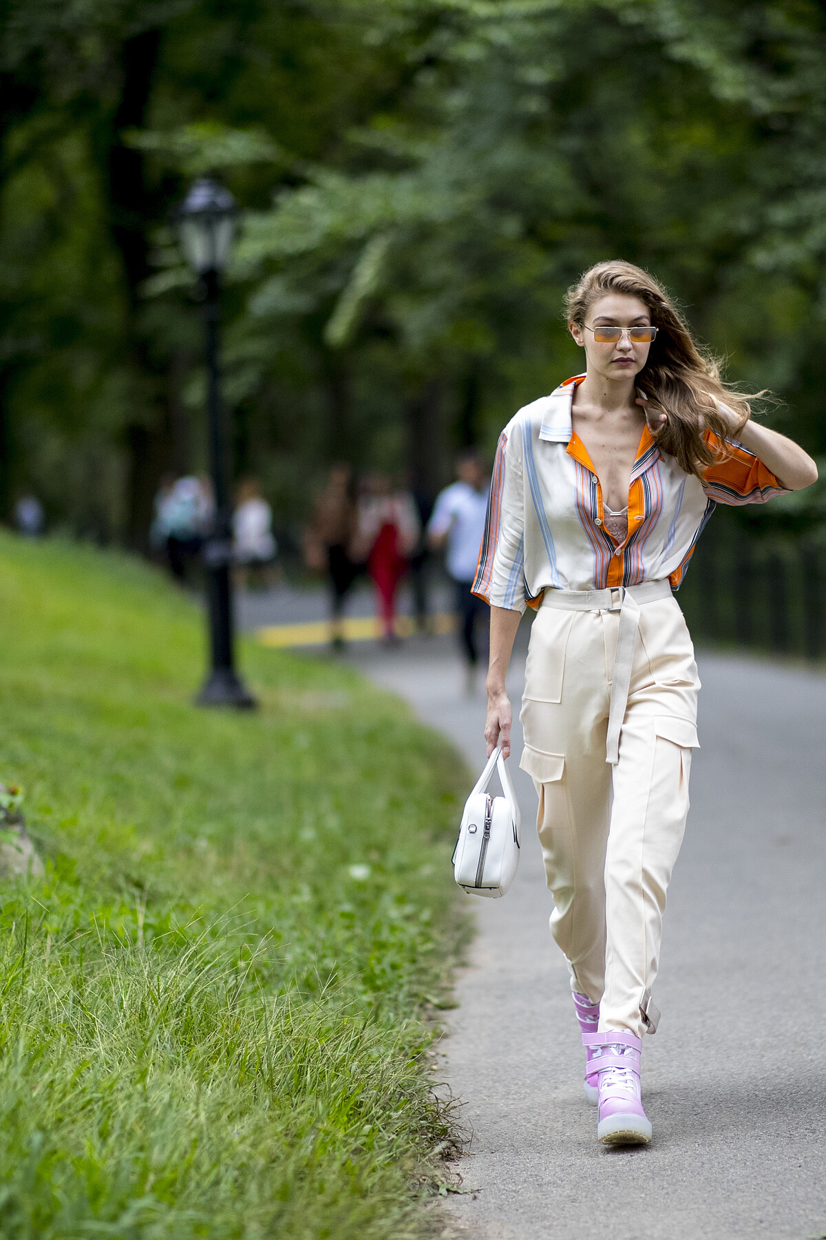 總結Gigi Hadid私底下最愛的穿衣風格,便是短版上衣和高腰長褲的組合。除了能彰顯九頭身的高挑比例,同時也完美反應Gigi Hadid的美式青春風。