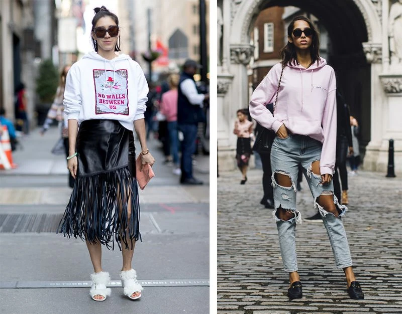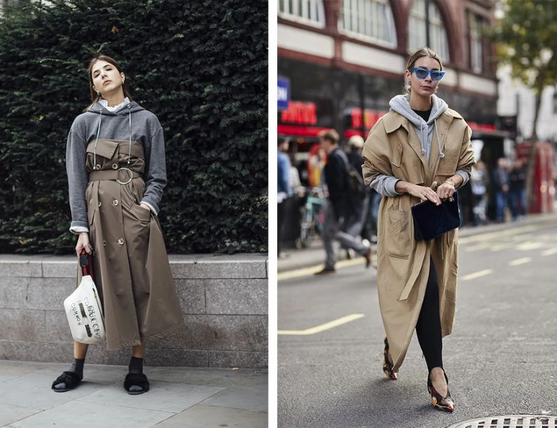 最近不管是在名人機場穿搭還是潮人街拍當中,都可以看到過去常常被認為太孩子氣的連帽衫被大量著用跟混搭。內裡寬鬆又刷毛、起風還可以立刻套頭保暖的連帽衫帶有進可攻退可守的服裝特質,在季節多變的街頭大受歡迎!