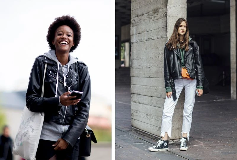 翻領皮外套也是連帽衫的好朋友,不管是拉上外套還是鬆鬆敞開都能營造率性有型的街頭氛圍。