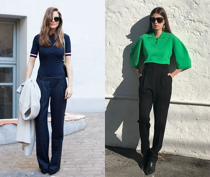 Polo衫也能很幹練!將西裝褲或束腰褲與Polo衫做為搭配,意外地平衡了休閒氛圍、融入恰好的正式感。注意的是,再搭配時記得挑選貼身版型的Polo衫,或是具有設計感的款式如燈籠袖,才不會在辦公場合顯得過分瀟灑。