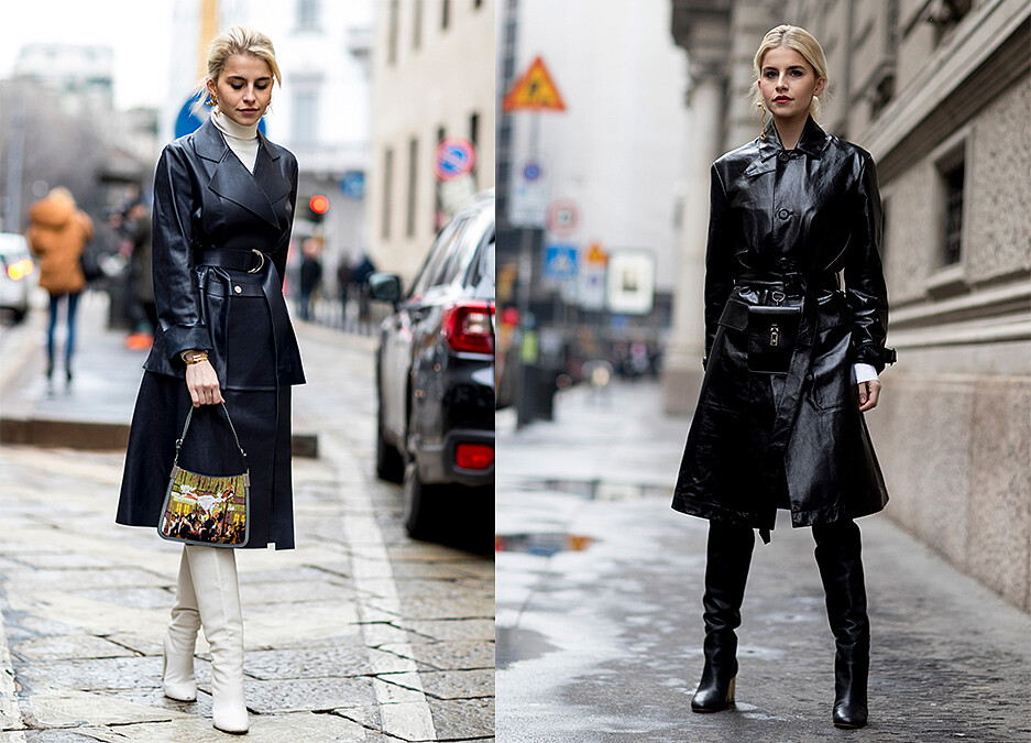 過膝皮衣這樣大型的穿搭單品帶來的份量感,就要更重視抓出腰間比例的小細節,包括寬管靴和露出手腕線條等等一樣細節都不容忽視!