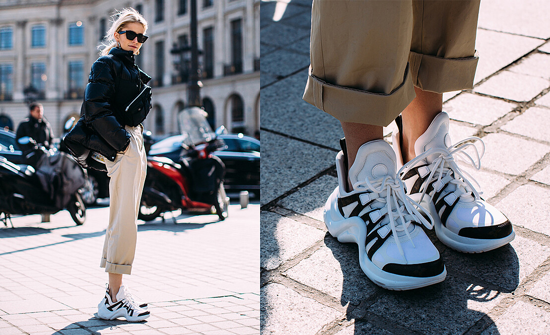今年狠狠地火起讓各大潮人趨之若鶩的LV運動鞋Caroline Daur自然也有一雙,容易顯矮的高筒設計只要搭配寬反折褲腳與露出區域腿部與腳踝線條瞬間調整比例,簡直不能更生火!