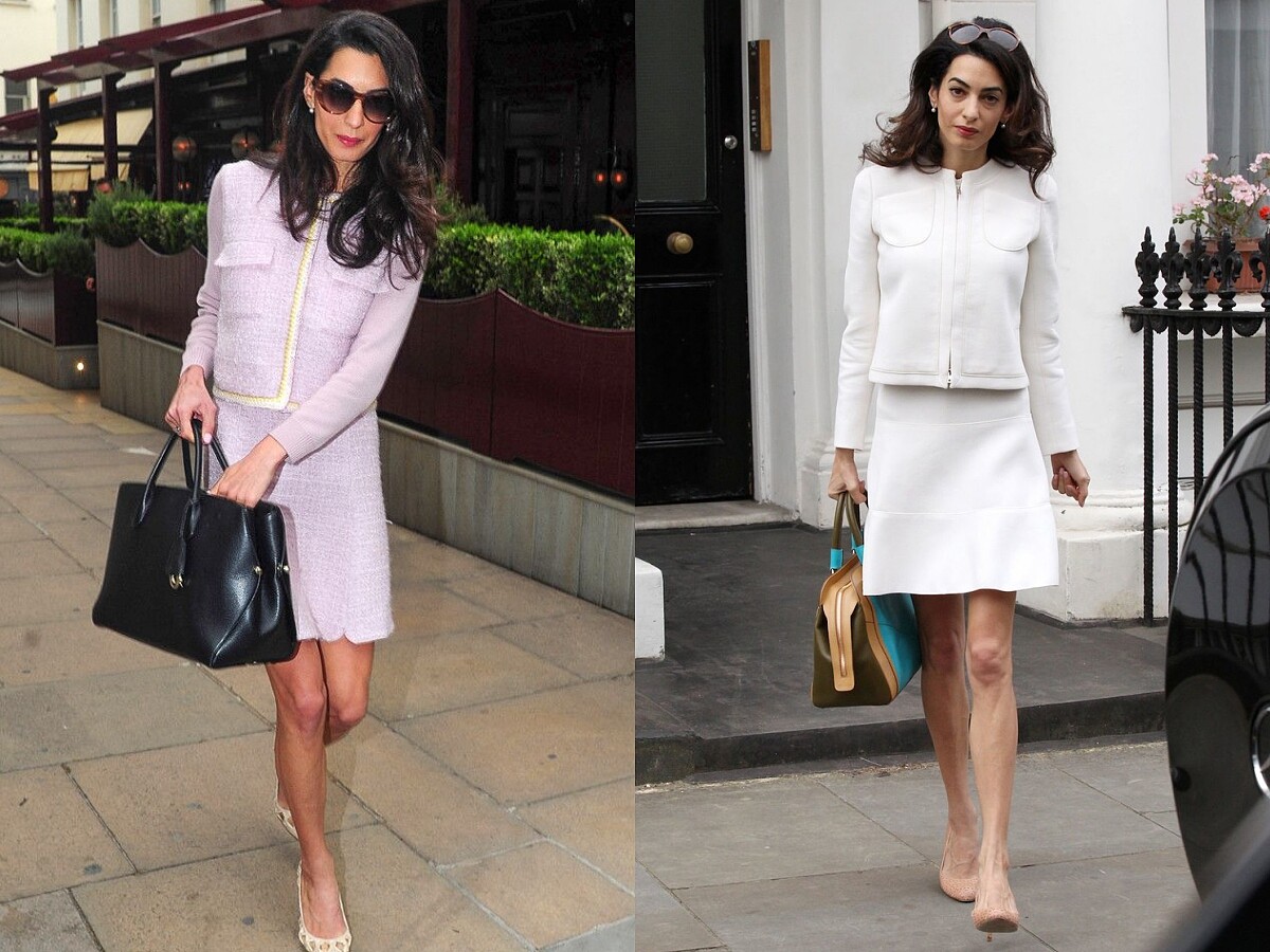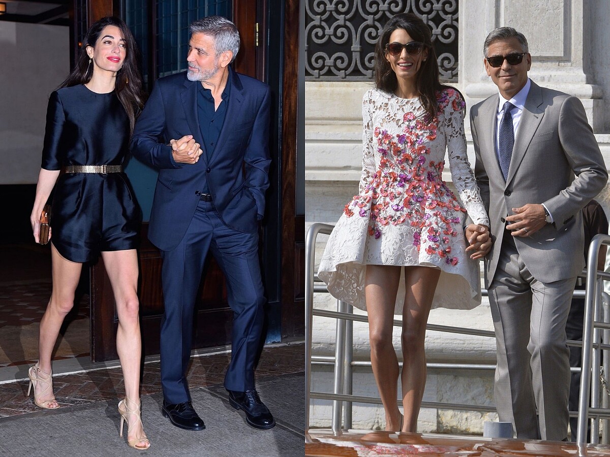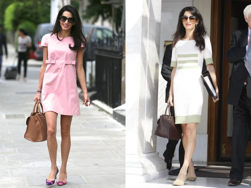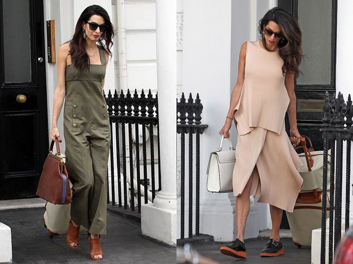 連身褲和小洋裝也是時常出現在Amal Clooney穿搭中的單品,短版的設計除了將Amal Clooney的美腿襯托的更加修長,George Clooney在色彩上的精心挑選與搭配都和老婆Amal Clooney的裝扮呈現出完美的默契組合。