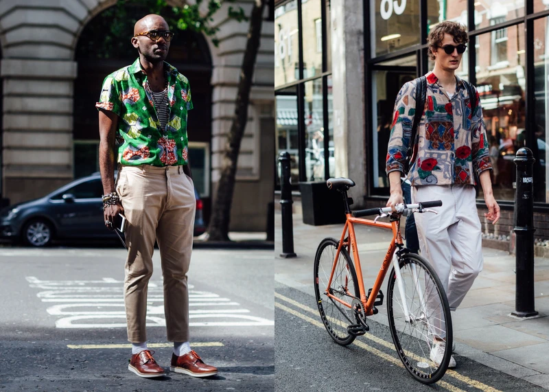如果不想思考太多的話,印花襯衫加上淺色的素面長褲也是個簡單的好選擇。