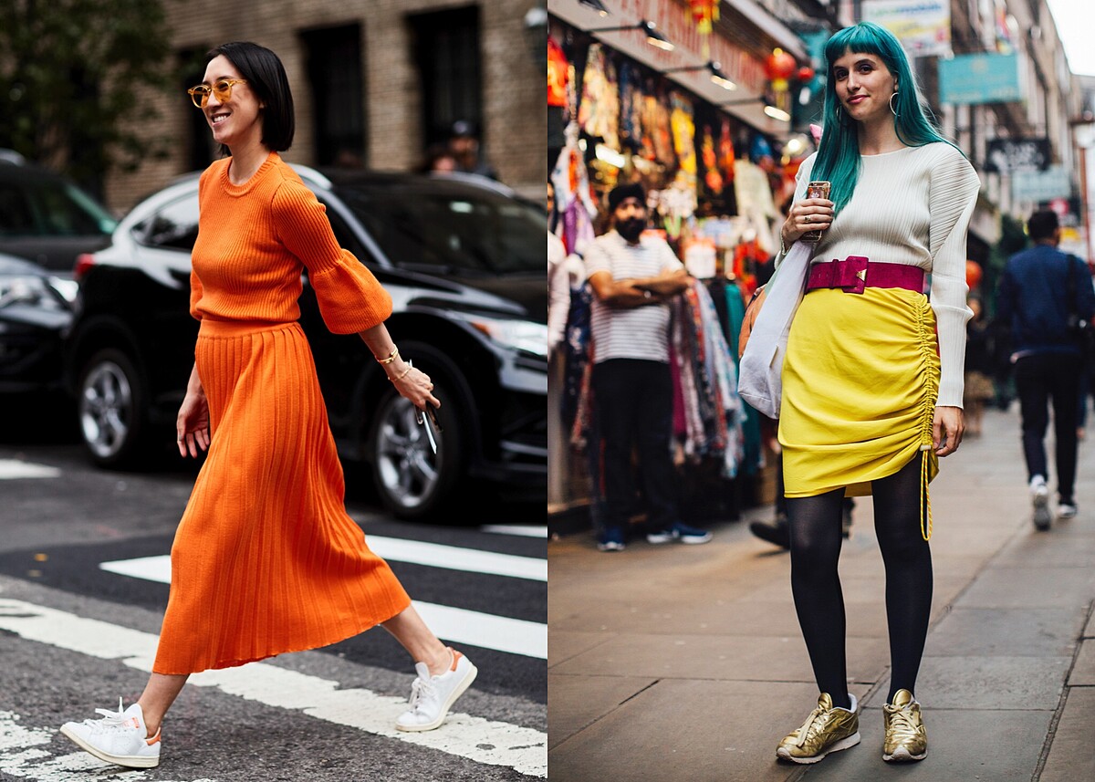 裙裝和高跟鞋不再是固定搭配了。裙裝配上一雙運動鞋,不僅在行動上更方便舒適,也自然地散發著大方、率性的氣息。