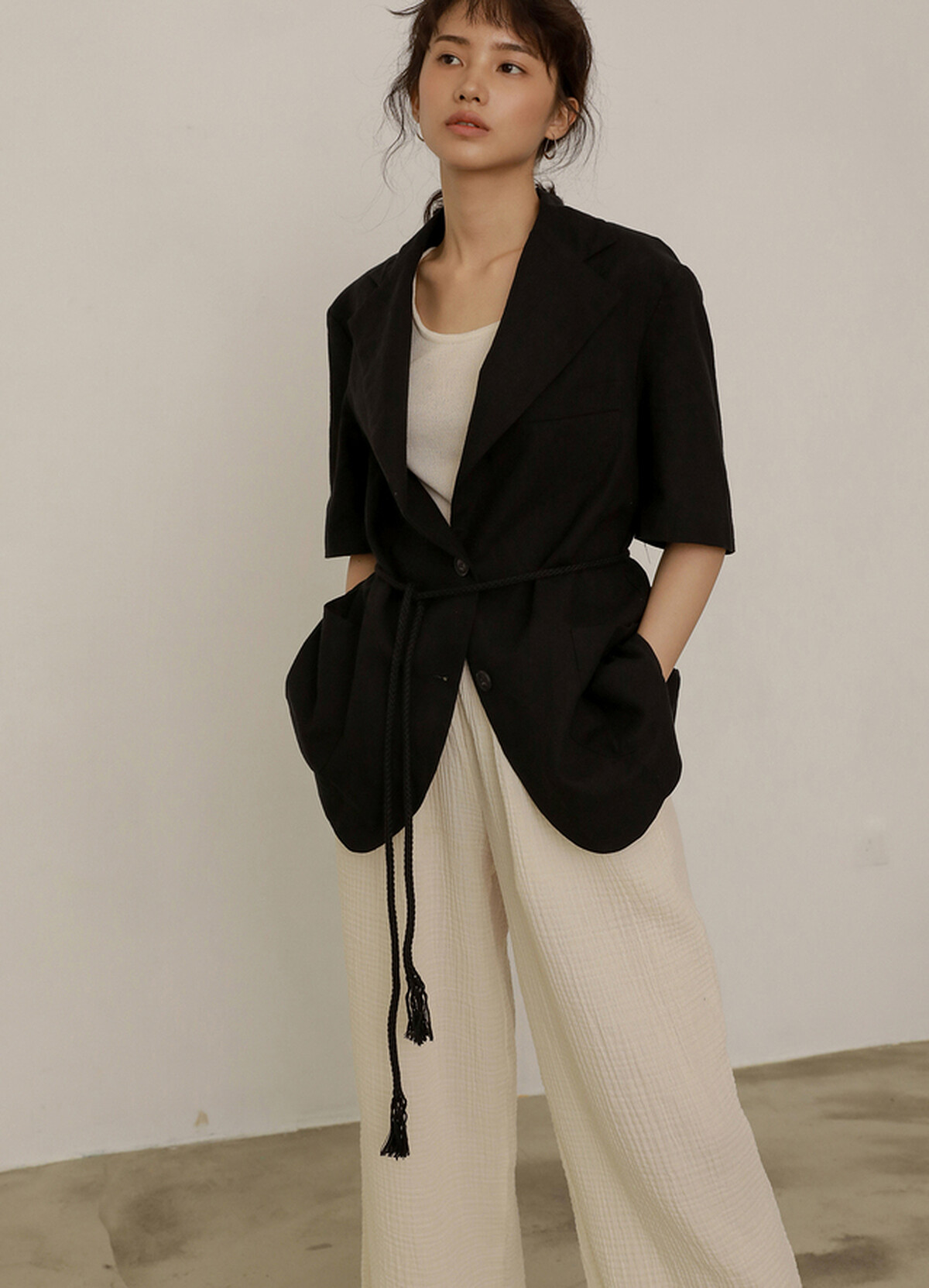 首先就是夏天最流行的棉麻質料延伸,讓偶爾還是高溫的天氣也穿的住。相較於西裝布的硬挺,棉麻材質多了一點輕薄、休閒感。