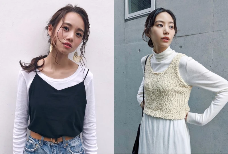 將小背心罩於衣服外頭的造型一直以來都是日本女孩喜愛的穿搭法之一,不但替衣著添入恬淡的鄰家女孩氣息,貼身一點的剪裁還能襯出身形曲線。