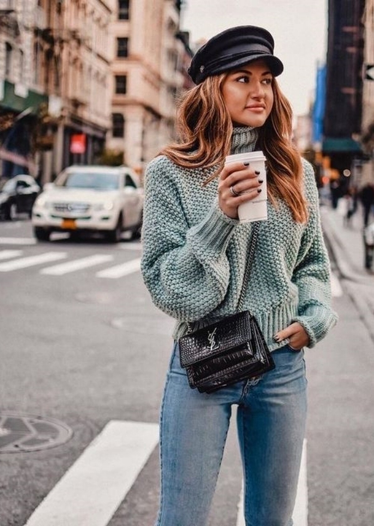 寬鬆是近期服飾的設計特點,寬領口修飾臉型,高領則達到拉長脖子的視覺,怕多層穿搭破壞比例,就選高領毛衣陪你度過冬天。