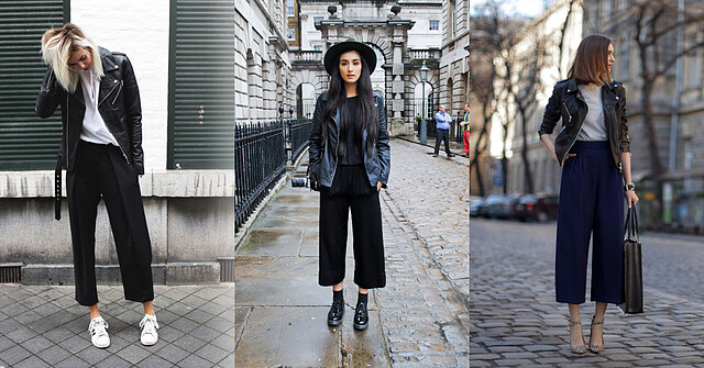 ▲ 一般來說穿著皮衣時搭配緊身褲的人會比較多,但這幾位達人卻反而選擇寬褲擺脫以往皮衣總是「上窄 x 下窄」的既定印象。而且不管你選擇的是球鞋、靴子或是高跟鞋,只要巧妙的露出多一點腳踝就能營造身材高挑的感覺!