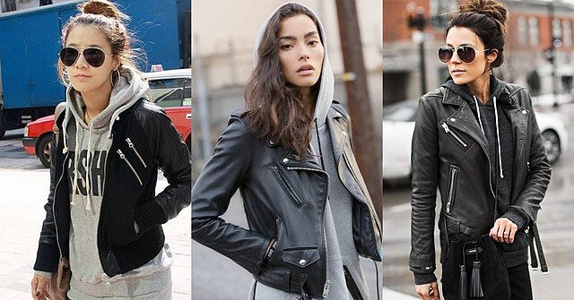 ▲ 另外一種常見的歐美風穿搭就是套上帽 T ,帶出慵懶的休閒感。如果你是長髮可以綁成丸子頭,否則頭髮的厚重感很容易讓人感覺沒精神。如果你每次買了帽 T 卻都只會單穿或配牛仔外套,下次就來試試看皮衣吧!