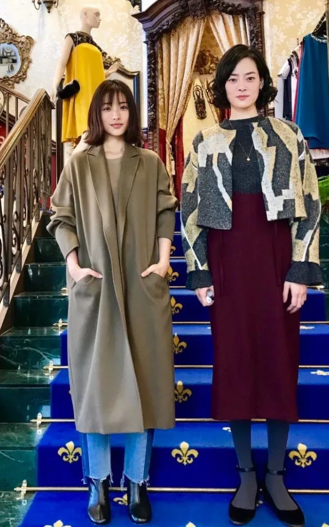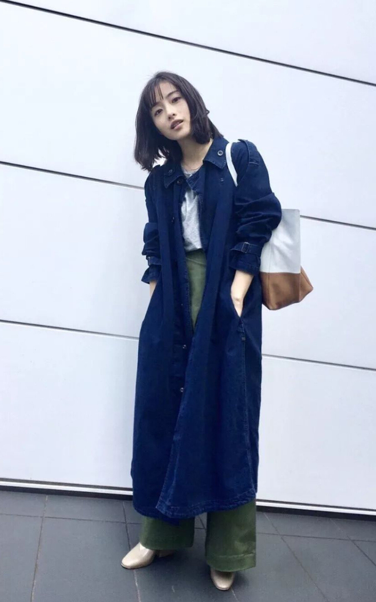 長版外套巧妙的讓人忽略石原的身高,是非常聰明的選擇,但是注意內搭不要忘記搭配高腰剪裁的連身裙以及高腰的長褲,鞋子則是可以選擇跟鞋,比例上才會更好!