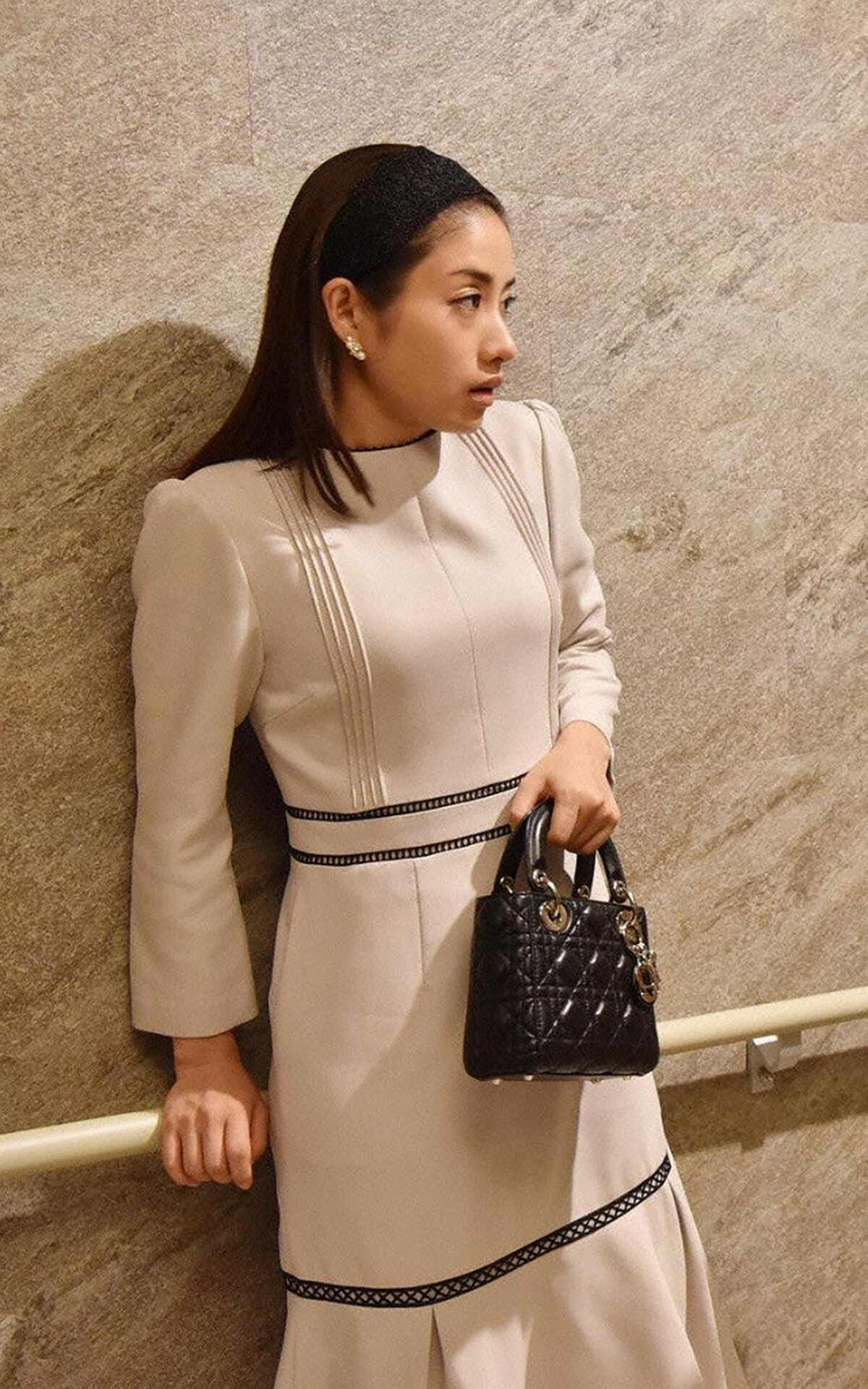 ▲ 米白色連衣裙散發氣質知性感,上面的撞色裝飾線精美又特別,看起來不易皺的材質是讓人充滿精神感的關鍵!