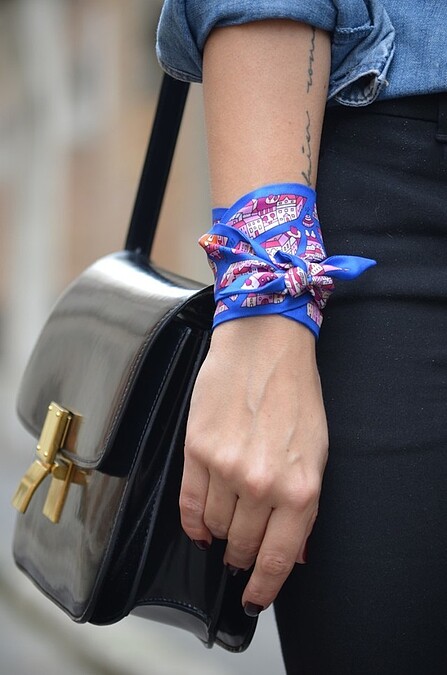 ▲ 當你捲起袖子時,可不要忘記也能將領巾綁在手上啦!偶爾利用領巾來取代手錶等飾品也很不錯!