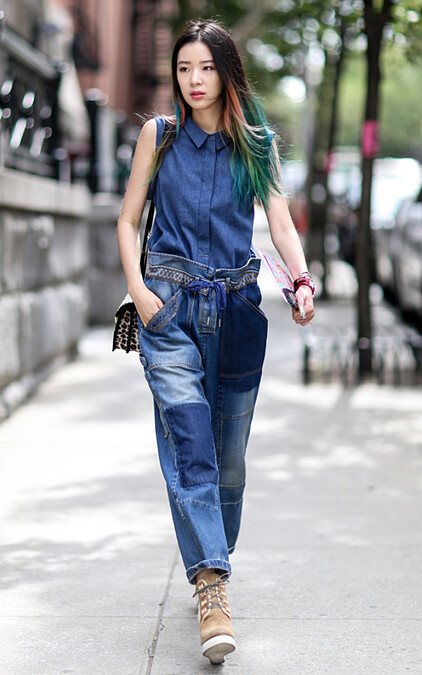 跟前一招有異曲同工之妙,這次可以直接挑選上面有拼接、補釘感的單寧單品,色塊的活潑設計看起來硬是比別人還要有造型!