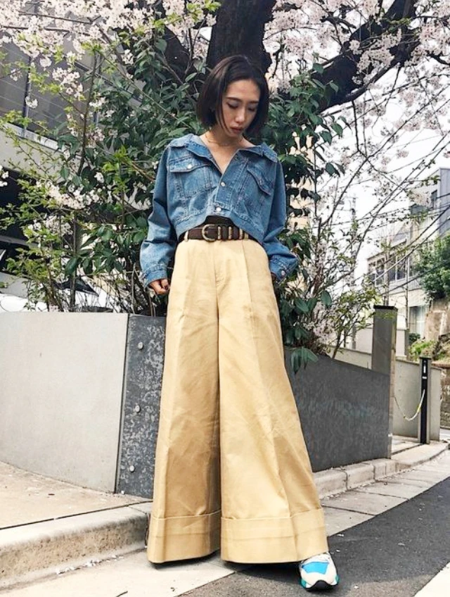 寬褲選擇高腰的款式,並且搭配短版的上衣就能避免踩到很多雷了!而且寬褲對於下半身肉肉的女生而言真的非常友善啊!