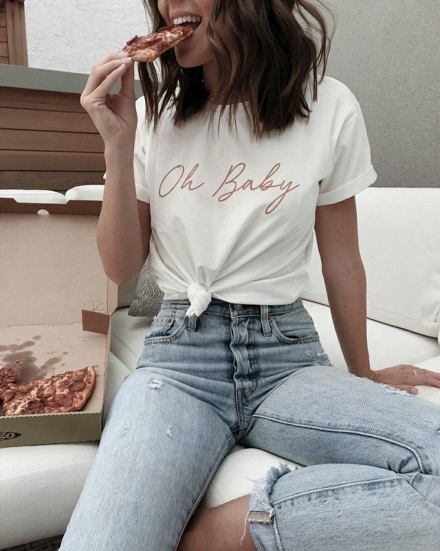 將 T 恤、襯衫打結的穿搭法大家一定不陌生,無論是否穿著高腰褲都能創造好比例,若你是對於自己腰部線條很有自信的女孩也能刻意地將腰部露出來,展現性感,當然也能依照自己的喜好與接受程度來調整打結的高度,就算是不露腰也能擁有好比例,替整體穿搭加分!