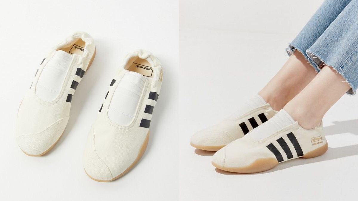 喜歡優雅風的絕對要參考這雙!雖說顧名思義的設計靈感源自跆拳道,但修長的窄身形和材質上的米白色耐磨帆布和白色鬆緊帶,共組出倒影著芭蕾舞鞋的曼妙身影,而焦糖色橡膠底和品牌標誌性的織帶則賦予鞋身恰好的休閒氛圍,無論與裙裝或是褲裝搭配都不顯違和。此外,鞋後側的燙金Logo點綴也替整體質感大大提升。(售價約NT2,790)