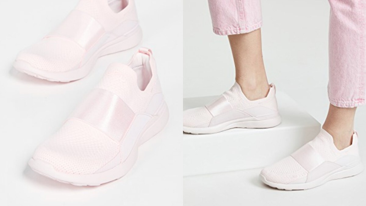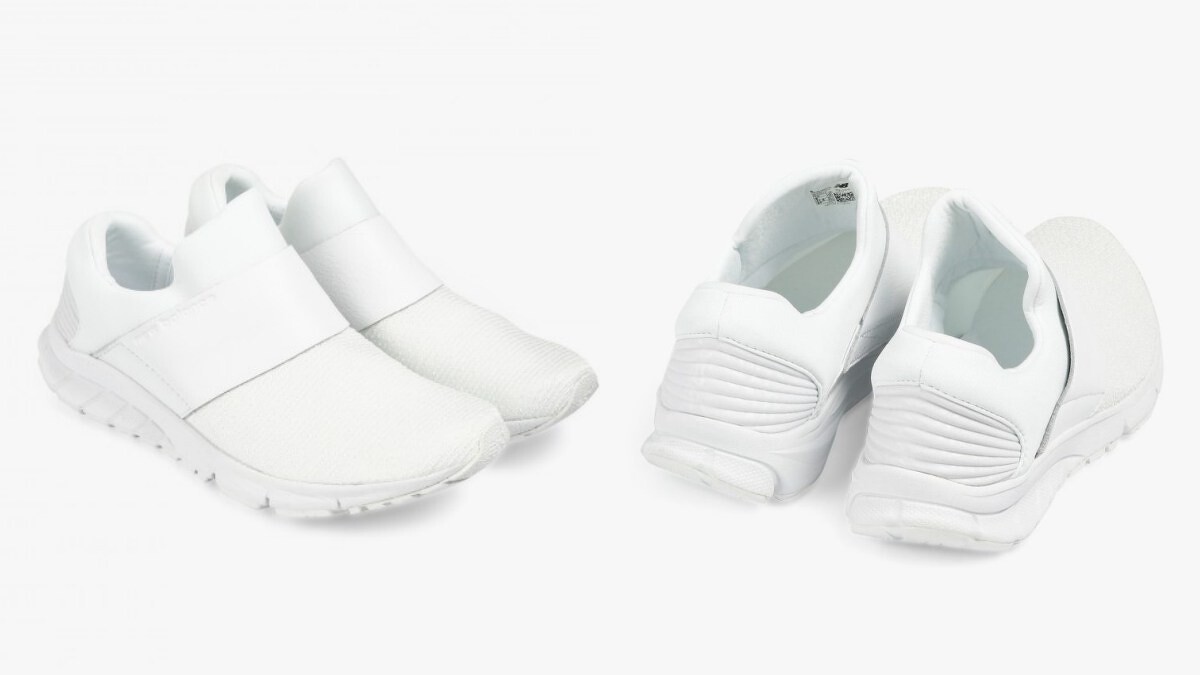 有誰也對奶油色系的鞋子愛不釋手?這雙有著粉膚色、裸膚色、米白色的懶人球鞋,可說是將所有討人喜愛的甜潤奶油色融為一體,而輕盈的材質選用使你無論是怎麼彎曲伸展都可行得通!然而品牌那小巧可愛的勾勾Logo除了出現在鞋後側,前方也可見到它的身影喔~(售價約NT4,035)