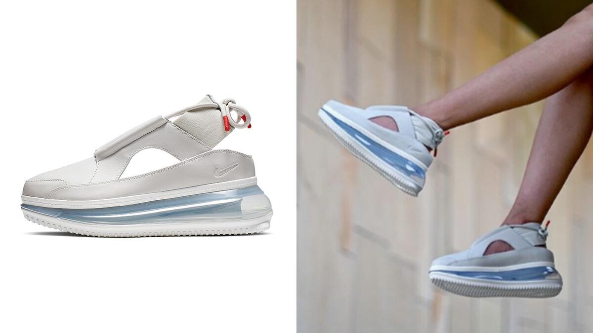 若你對年初時Nike所推出的Air Max 720特別有感的話,那麼這雙近期在網路上引起熱烈討論甚至搶購一空的Air Max FF 720勢必會愛不釋手!除了延用厚實的全掌氣墊,FF版還多加了一層鞋底,使整體高度大大提升。鞋身方面則捨棄鞋帶,改以鏤空式涼鞋+球鞋形體,形朔出一雙別具摩登氛圍的造型休閒鞋款,而繫帶則設於鞋後跟處,尾巴上的橘紅點綴更是抹上一筆活力感。(售價NT6,700)