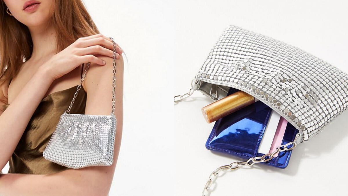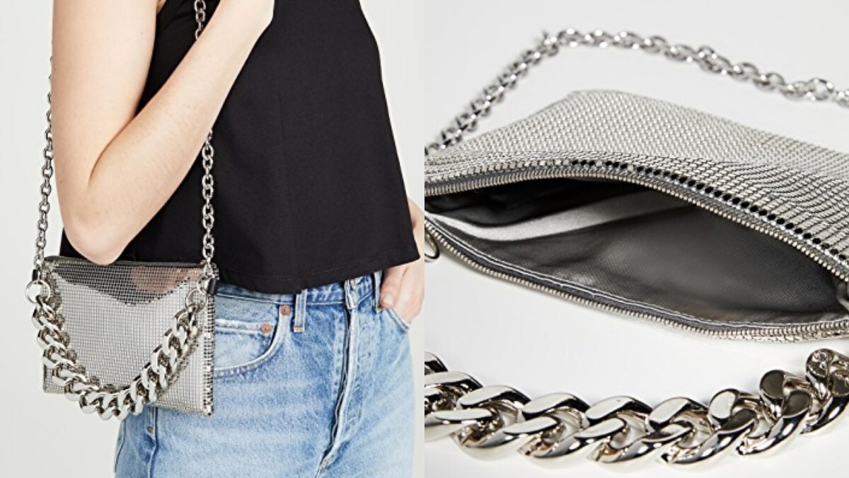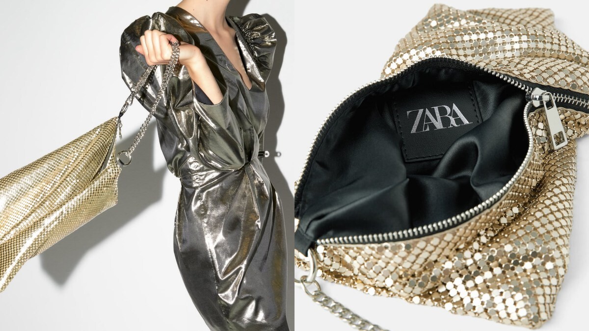 然而除了以上提及的中高價位款,不少快時尚品牌也紛紛推出金屬系手袋,像是西班牙品牌Zara就有一款以金屬網眼製作而成的鍊帶包。黑、銀、金的配色組合不僅顯得極具性格,兩側的環圈也使得女孩在造型時能夠自由調整背帶的長短。(售價NT1,290)