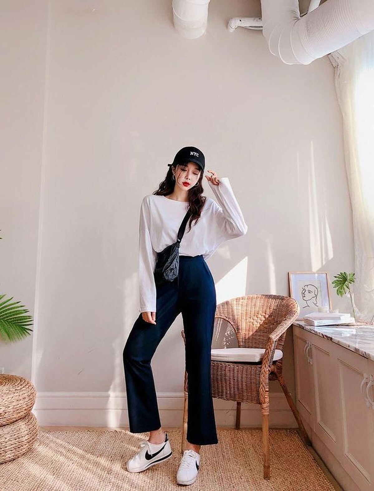 最時髦的褲子長度,只要依照自己的身高,選擇剛好碰地或是遮住腳踝的褲長,就能夠在視覺上擁有腰部以下都是腿的錯覺。但因為褲長的關係,建議選擇高腰款式並搭配短版上衣會讓身材看起來更為修長!