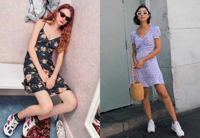洋裝 x 球鞋的穿搭已經不夠看,搭上造型獨特的墨鏡後才能讓自己更為特別!兩件花色洋裝雖然看似復古又青春,可混搭球鞋後便傳遞出一股反叛的精神,再加上貓眼和方形兩種款式的墨鏡,瞬間讓整體呈現出衝突的美感,令人百看不厭!