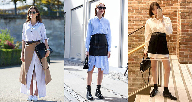 雖然襯衫裙已經是裙子,但也能將它疊穿裙子做搭配,除了增加層次感,也使用不同材質、顏色來做出搶眼的視覺效果,但疊穿裙子是難度比較高的穿法,比較需要練習跟花心思搭配。