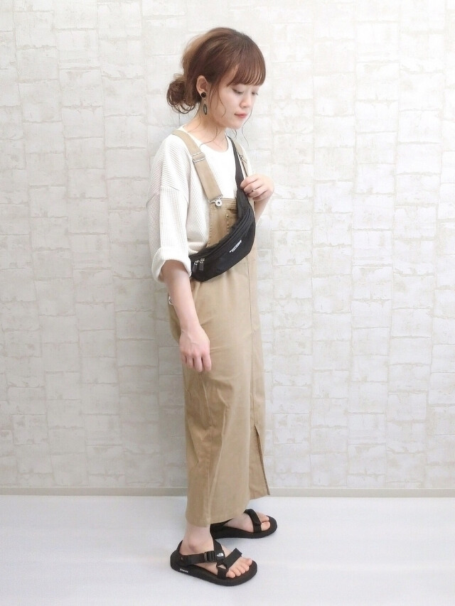 給人減齡印象的吊帶裙款,結合不同的時髦延伸與設計,使吊帶裙連結嶄新的造型形象,選擇內搭白 TEE 當作搭配,就能打造層次豐富的視覺焦點,再踏上涼鞋就很好看加分