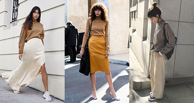 如果想要貫徹裸色穿搭,可以將全身單品用相近的顏色但深淺不同來搭配,如此不但製造出很美的漸層感,也讓整體色系一致和諧,讓視覺觀感非常舒服,優雅又別緻,也是最能提升穿搭高級感的方式,同色系穿搭也是用這個原則。