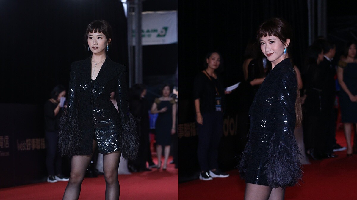 去年擔任金馬獎主持人的LuLu,這回以綜藝節目主持人入圍者出席,身著一身亮片西裝裝束的她,小露長腿的性感成為紅毯上亮點之一。入圍戲劇節目女主角的蔡淑臻,則換上粉色瓶口禮服現身,側邊開衩設計展現她修長大腿線條,微露性感的小心機博得粉絲稱讚。