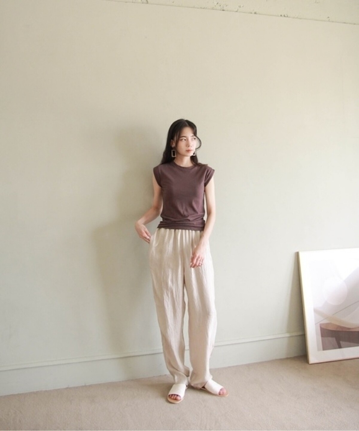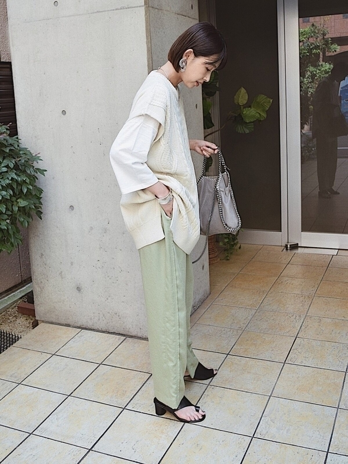 質感系的緞面感長褲,想傳達與眾不同的衣著形象的話,只要透過不同的上衣混合,就能打造出令人為之一亮的嶄新風格,從背心、 TEE 、針織單品,讓每天穿搭時髦兼具的日系態度吧。